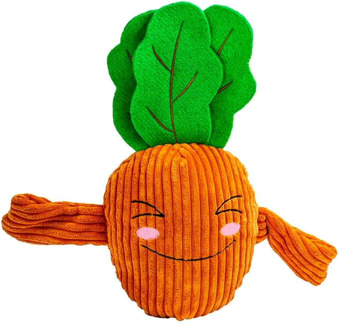 - VEGGIE-THEMED PLUSH FOR GENTLE CHEWERS: Soft plush shaped like colourful vegetables offers dogs a fun and safe chew companion. Smooth exterior paired with cosy stuffing provides soothing comfort during downtime or satisfying softness for light everyday chewing.